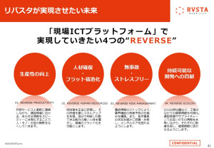 大小様々な企業が参入をしてきているこの市場において、リバスタは「現場ICTプラットフォーム」を通じた、より多くのソリューション提供を目指しています。